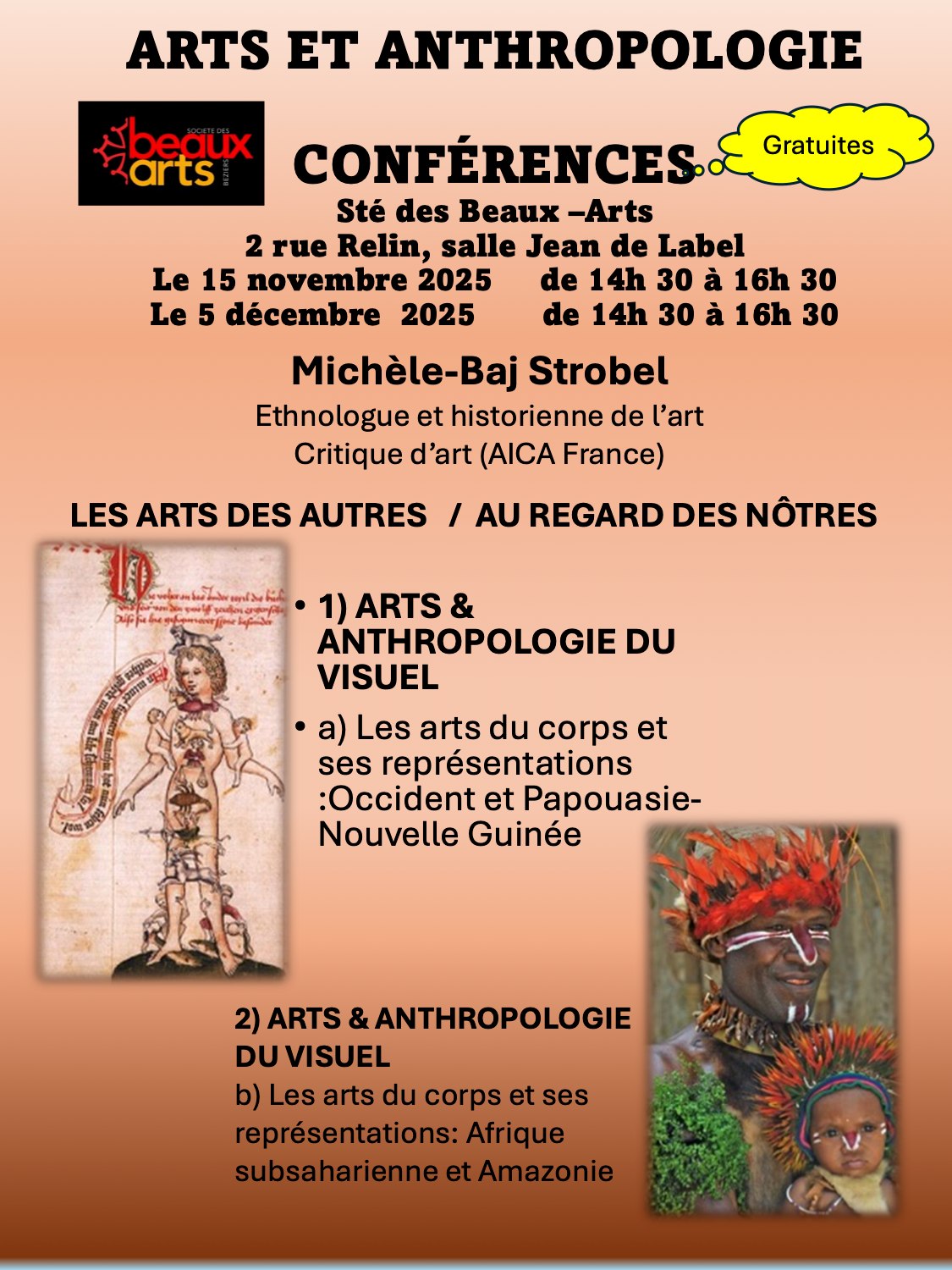 Michèle-Baj STROBEL Maître de conférences, diplômée en ethnologie et histoire de l’Art, auteure de nombreuses publications, membre de la Société des Beaux-Arts de BEZIERS, propose tout un cycle de conférences autour des cultures et des arts africains, océaniens, ou asiatiques et liés notamment au primitivisme. Le thème : ARTS DU CORPS (1) - Préhistoire, Papouasie etc… [...]